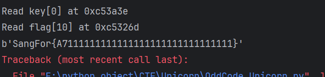 最后有两位是爆破不出来的,我尝试通过address判断不知道为什么总是跳不出来,可能是转为32位部分之后64Unicorn模拟不了