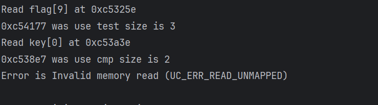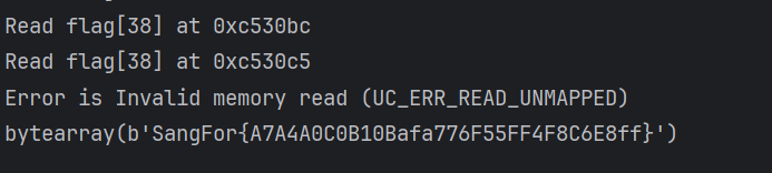 print(f"Read flag[{address - (self.address + 0x601D)}] at {hex(mu.reg_read(UC_X86_REG_RIP))}")