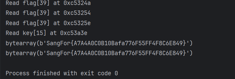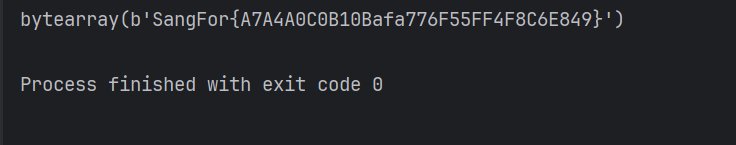 flag = bytearray(b'SangFor{A7A4A0C0B10Bafa776F55FF4F8C6E811}')
