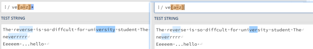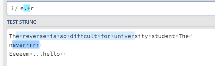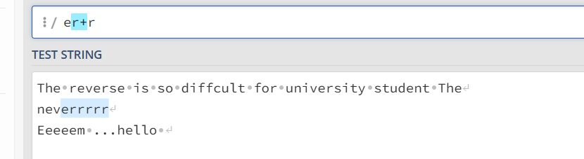 加号的前一个字符至少出现一次 er+r 表示e和r之间有一个或者多个r的字符串