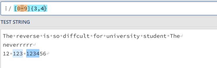 [0-9]{4,6} 匹配数字出现4-6次 [0-9]{4, } 匹配数字至少出现4次
