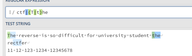 表示或者 ctf|(T|t)he 表示匹配 ctf 和 (T|t)he 字符串也就是The 和 the