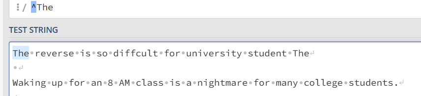 有两个作用,第一个是从每行的开始进行匹配(不常用)^The 就是匹配 The而且必须在每行的开始